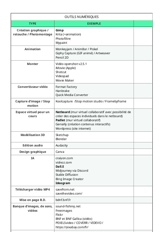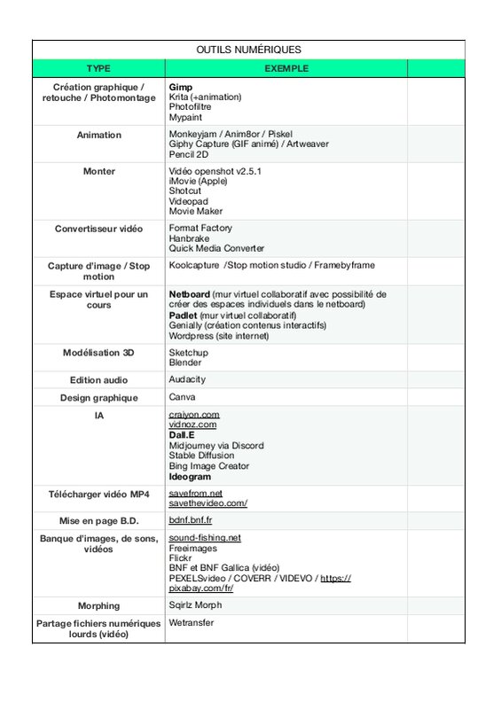 • Outils numériques